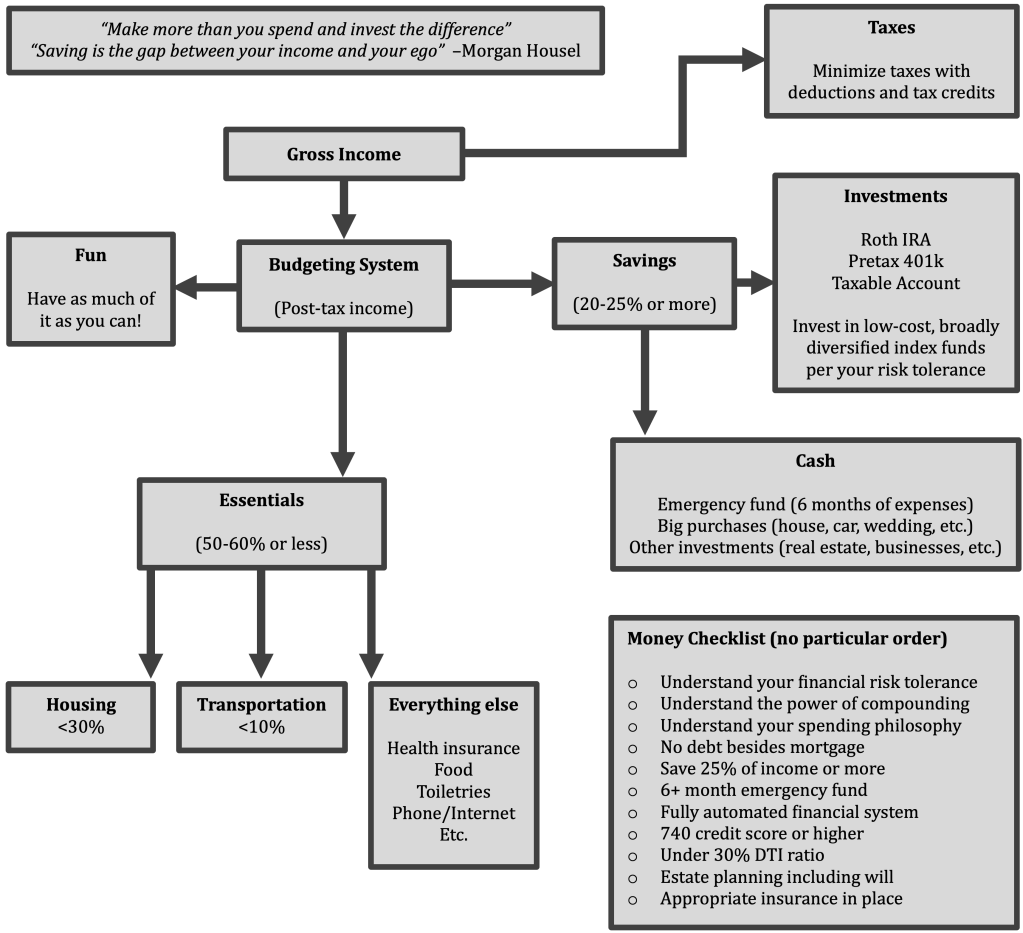In lieu of the plethora of detail presented in this book, I can summarize “how to be successful with your finances” on a single sheet of paper.